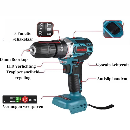 ● Staal 13mm (1/2") ● Lage snelheid 0-7800 slagen per minuut ● Lage snelheid 0-1200 tpm. |